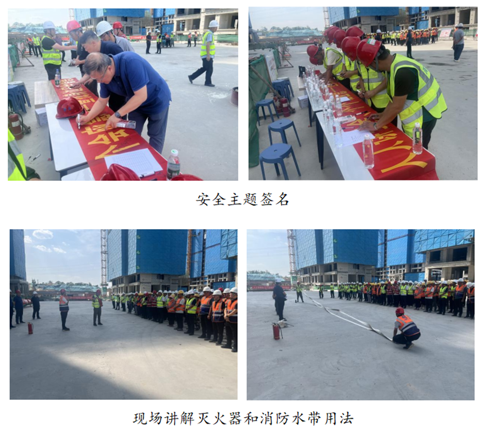 活動期間,大家積極參與安全主題簽名和主題宣誓,講解員現(xiàn)場講解消防水帶和滅火器的用法,解答安全生產(chǎn)相關(guān)知識,并開展了消防實戰(zhàn)演練。集團公司分管安全生產(chǎn)的總經(jīng)理助理黃志澎作重要講話,強調(diào)了安全生產(chǎn)的重要性,要求各單位扎實做好今年防汛工作,并為一線工人發(fā)放防暑降溫藥品和安全知識手冊200套。