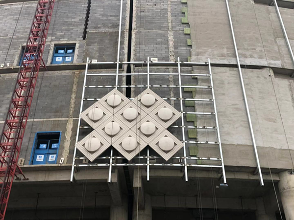 除上述外的其他板型還有:菱形加圓形單曲造型灰色荔枝面GRC組合板、碗狀雙曲造型灰色荔枝面GRC組合板、灰色荔枝面平板,均各有特色,從不同的角度展現(xiàn)中原文化的根源性、原創(chuàng)性、包容性、開放性。中原文化博大精深,源遠(yuǎn)流長,她不是普通的地域文化,而是中華民族傳統(tǒng)文化的根源和主干。中原文化璀璨瑰麗,而鄭州美術(shù)館及檔案史志館、鄭州博物館新館猶如深閨待嫁的新娘,2019年讓我們共同見證她的華麗呈現(xiàn)。