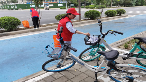 啟動儀式后,趙主任帶領(lǐng)志愿者們在博學(xué)路(金水東路-平安大道)路段兩側(cè)開展了“三撿”、擺放亂停放非機動車輛、清除小廣告、勸阻市民亂扔垃圾、隨地吐痰等不文明行為、向路過行人提供信息咨詢等“文明引導(dǎo)”志愿服務(wù)活動。一抹志愿紅映襯在道路兩側(cè),形成了公共文明引導(dǎo)志愿服務(wù)行動強勁的影響力,使文明行為更加深入人心。